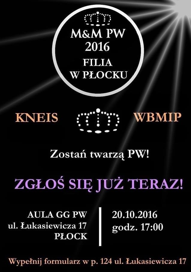 20 października o godzinie 17:00 odbędzie się wydziałowy etap Wyborów Miss i Mistera. Zwycięzcy reprezentować będą Filię na Gali Finałowej w Warszawie. Zgłoszenia kandydatur w pokoju 124 GG.